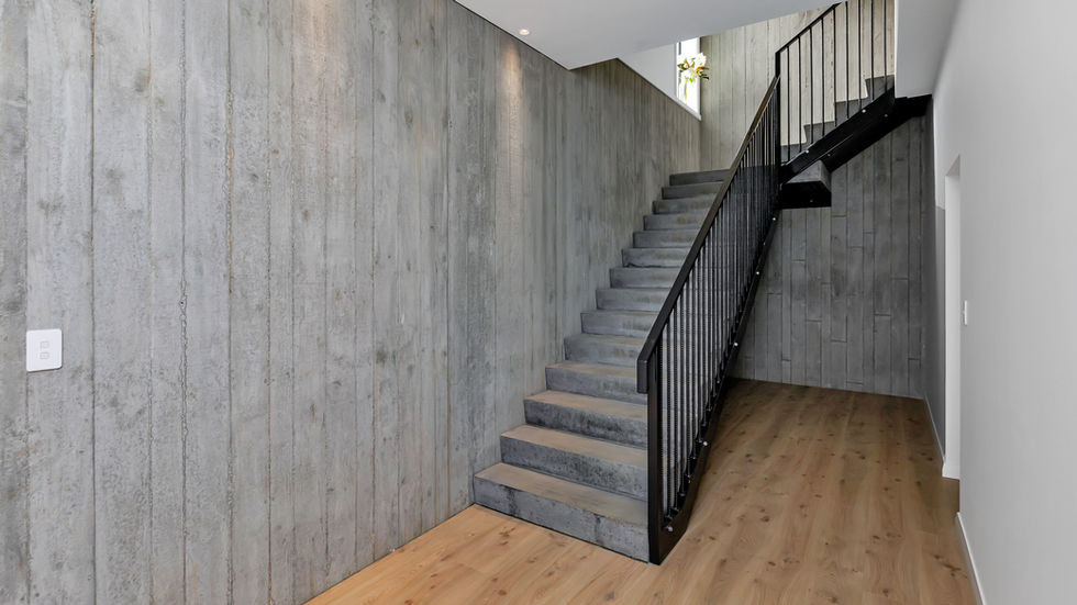 Kurt and Petra's Whangarei Heads home sitting proudly overlooking the Whangarei Harbour definitely makes the most of the beautiful coastal outlook. With extensive glazing through the large open plan living space and master suite. The material choice for this home includes beautifully crafted precast panels by Busk Concrete with a boarded vertical wood patterning to the basement garage and entry that carries through to the interior providing a bold architectural statement.